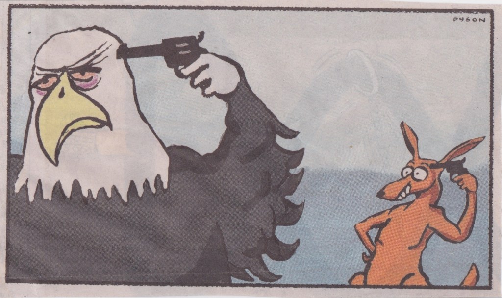 So these are the flimsy pretexts that Trump texted to Albo and Penny at 3am the other night, in order to convince them to abandon their quaint and anachronist notion of a ‘rules based order.’ It didn’t take much convincing. The next morning Penny and Albo learnt the text ‘off -by-heart, just like they used to in Sunday school, and they’ve been repeating it ad infinitum at every opportunity, just like they used to bang on about ‘the rules based order’.