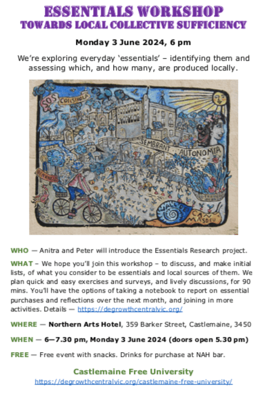 We are a group of Castlemaine region residents who believe it is better to repair things wherever possible rather than to throw them away. We have created a space called the ‘Castlemaine Repair Cafe’, where local people can bring clothes, radios, toys and all kinds of household goods to be repaired, and learn how to do it themselves!
